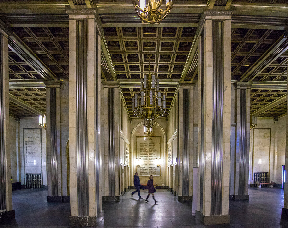 Date: 2024-03-03 07:06 am (UTC)В вестибюле высотки у Красных ворот Душкин повторил ключевой мотив "Маяковской". Большую часть помещений сейчас занимают различные подразделения РЖД. На входе стоят турникеты. Общедоступно только небольшое пространство между ними и входными дверями.